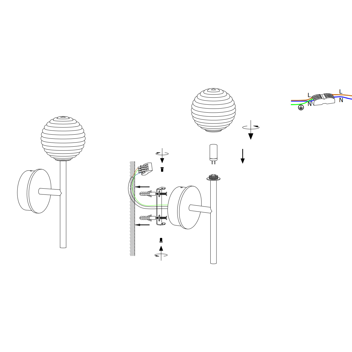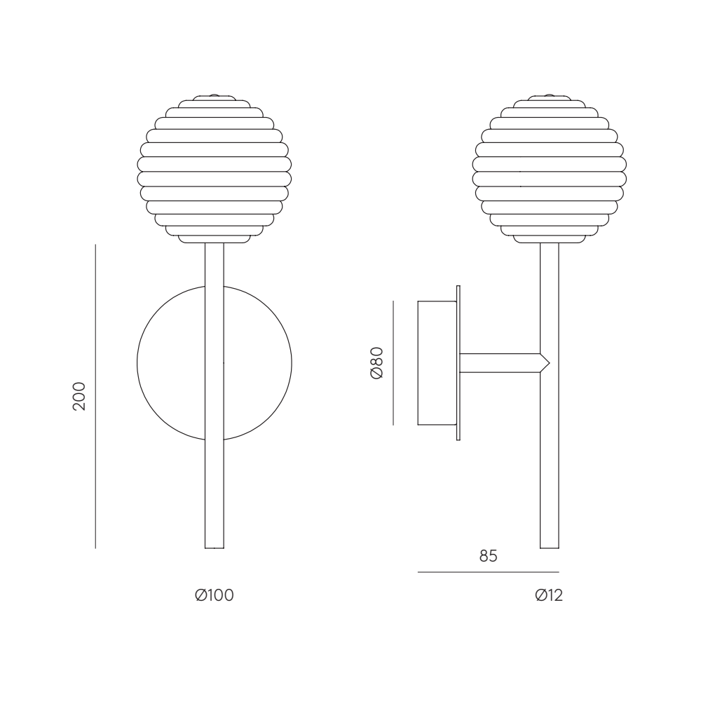 | Afmetingen: | Totaal: B 10 cm x D 8,5 cm x H 20 cm Glazen bol: Ø 10 cm Wandbevestiging: Ø 8 cm |