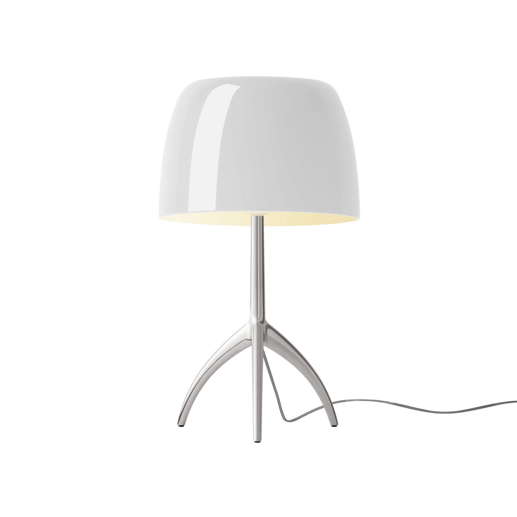 | Leverbaar in de kleur(en): | Lampvoet champagne aluminium verchroomd zwart Lampenkap wit Snoer transparant |