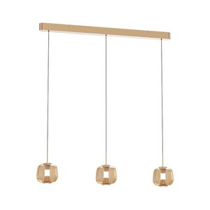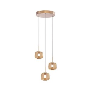 - is voorzien van drie amberkleurige glazen lampenkappen, elk met een diameter van 15,5 cm en een hoogte van 14 cm.
