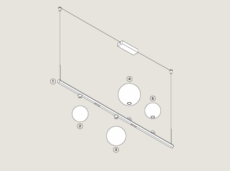 | Afmetingen: | Frame: L100 cm x H 2 cm Plafondbevestiging: L 20,2 cm Snoer: L 400 cm Glas: 2x Ø 10 cm, 1x Ø 12 cm en 1x Ø 14 cm |