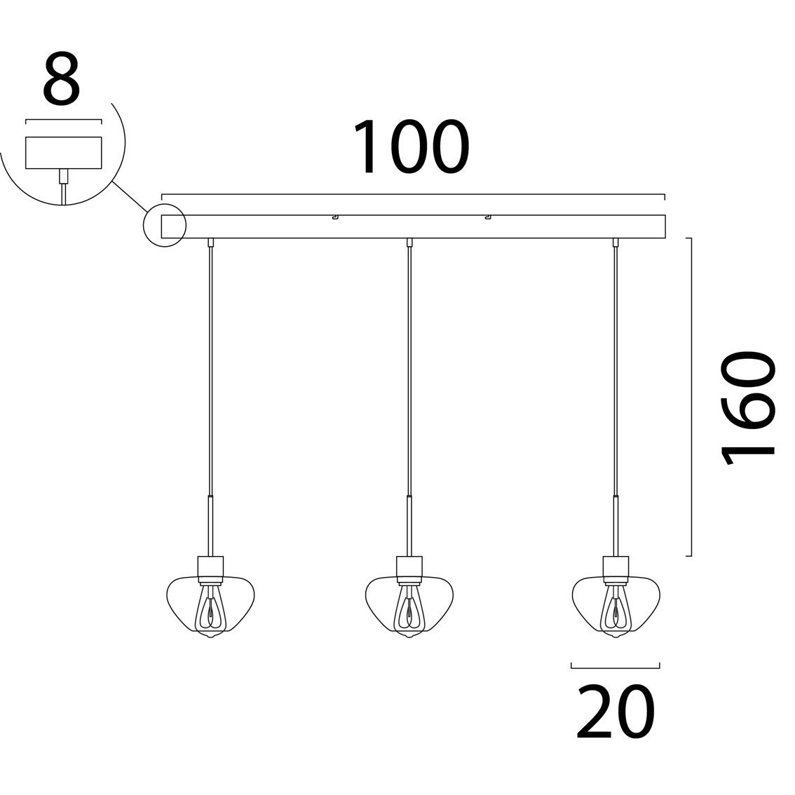 3-lichts hanglamp Genua | L 100 cm x B 8 cm | 3x Ø 20 cm