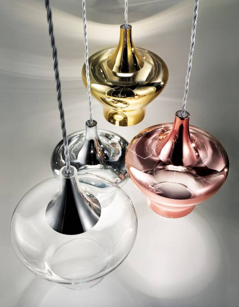 Leverbaar in de kleur(en): | Glas transparant hoogglans rookgrijs hoogglans brons goud rosé goud Plafondafdekking mat wit mat zwart koperachtig brons chroom champagne Frame/snoer chroom/wit zwart/zwart |