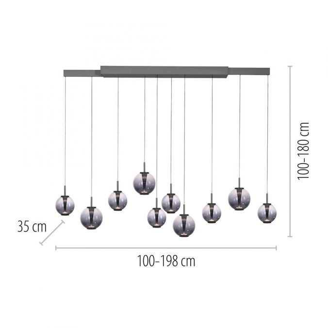 In hoogte/lengte verstelbare én dimbare 10-lichts hanglamp Pure E-Infinity met geïntegreerde LED