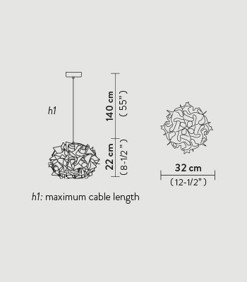 Afmetingen: | Lampenkap: L 32 cm x B 32 cm x H 22 cm Plafondafdekking: Ø 12 cm x H 3,2 cm Snoer: L maximaal 140 cm |