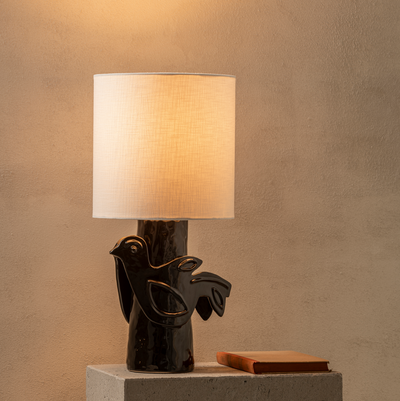 - heeft een opvallende lampvoet, die versierd is met een hand geboetseerde duif. Deze duif doet denken aan de schetsen van de beroemde kunstenaar Picasso. Het is dan ook geen toeval dat de lamp vernoemd is naar zijn dochter Paloma, wat 'duif' betekent in het Spaans. De voet van de lamp is leverbaar in drie verschillende kleuren: zwart, wit of rood.