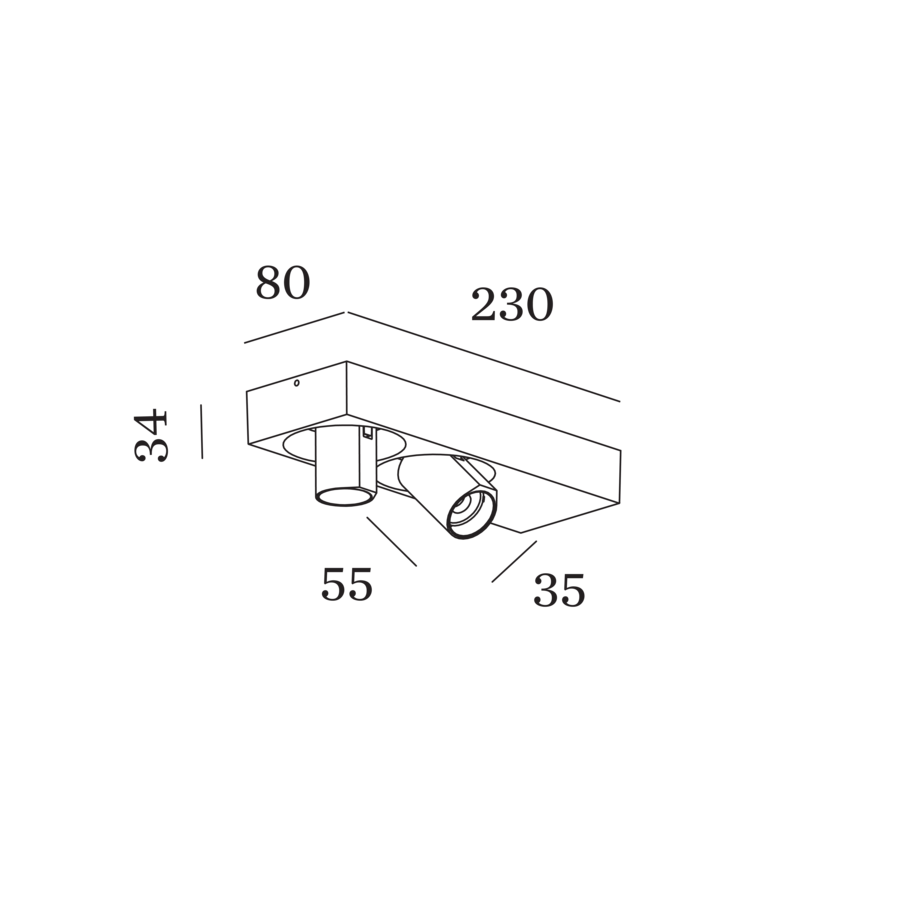 'Dim to Warm' dimbare, kantelbare én draaibare 2-lichts opbouwspot Bliek Petit 2.0 met geïntegreerde LED